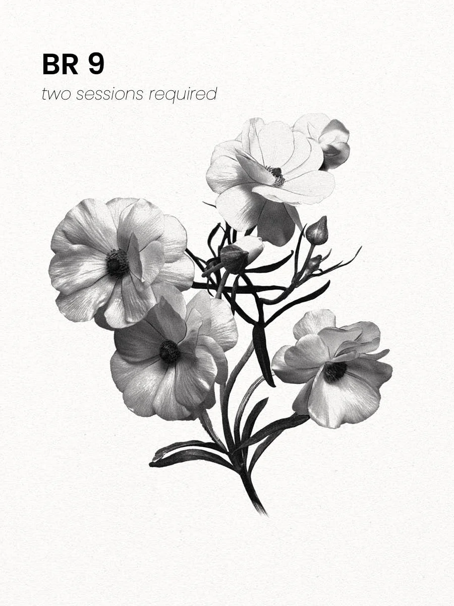 Depending on placement and sizing chosen, most of these can be completed in a single session. If sized large and/or challenging placement is chosen, two sessions may be required. Limbs are generally quicker to tattoo. Torso placement requires extra time.
